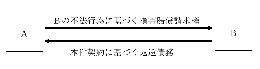 Aが被害者としてBに対する損害賠償債権を有しているため、本件契約に基づく返還債務と相殺することができますので、本肢は正しいです。